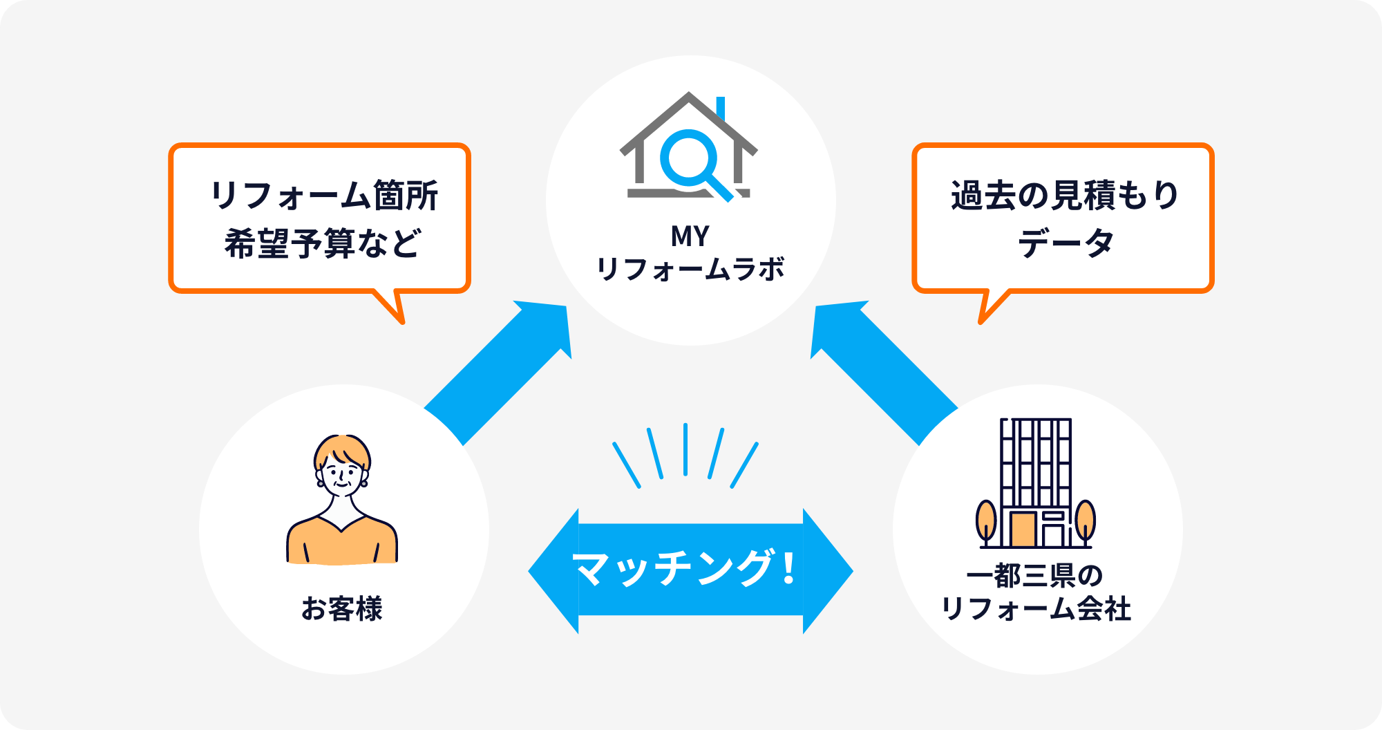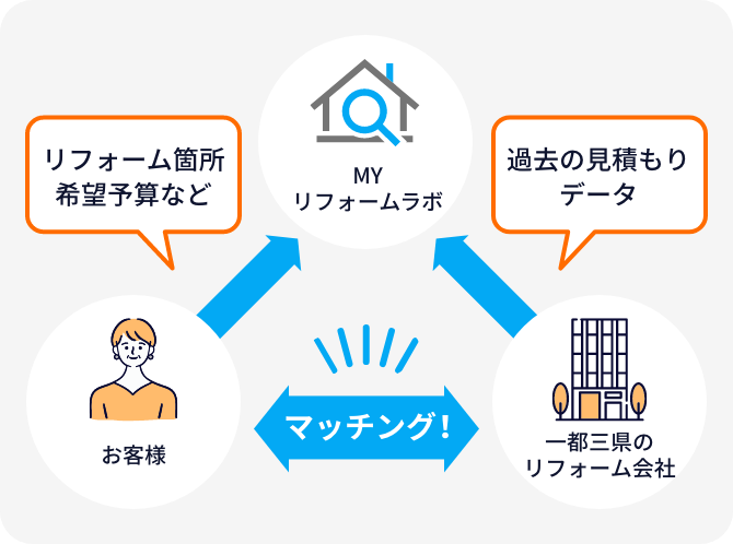 MYリフォームラボは、厳選リフォーム会社と一都三県に住む方を繋ぐプラットフォームです。