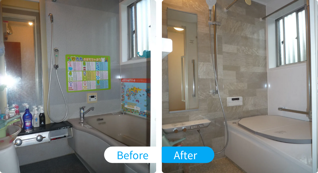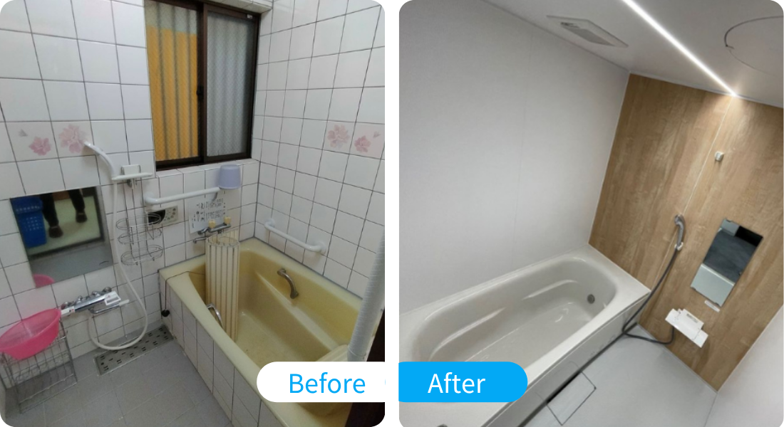 浴室のリフォームでしたが、パネルの色、柄を見本を見せながら、最近の傾向や浴室の現状とのマッチングについてご提案(選択肢)を提示くださったり、判断しやすく短時間で決めることが出来ました。業務にあたる基本的な考え方をご説明いただき、私の考えや希望を共感的に受け止めてもらえたので、話がスムーズに進められ、リフォームすることに明るい気持ちで向かうことができました。今回のご縁で大変よいところ(方々)と出会えたと感じたので、資金を貯められたら、さらに他のリフォームもお願いしたいと思っています。