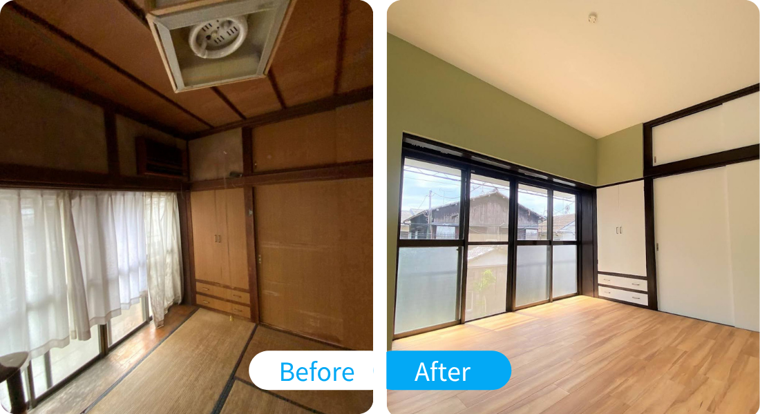 床は総貼り替え、風呂も全てリフォームというのが他社の施工内容でしたが、使える部分は使ってキレイにする方法を打診いただけました。 他に予算も割け、フローリングは選択肢も拡がりました。メールのレスポンスも早く、現調の時も分かりやすく、質問や相談もしやすかったです。気になったのは、後から納品した建具の搬入がスムーズでなかった点。