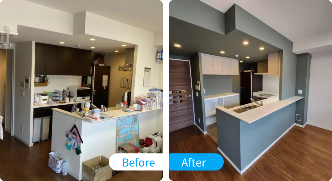 タカツカ建業さんに決めた理由は、ズバリ知識も経験も豊富だったことです。 キッチンの棚をつけることによって、ダウンライトが隠れてしまい、その移動が必要でした。他社さんでは、ハリがあるので天井の壁紙を張り替えたり大々的な工事になってしまうとのこと。タカツカ建業さんに相談すると、ハリがあっても大丈夫ですよとのこと。一級建築士の資格もお持ちのようだったので、迷わずこちらにお願いしました。見積もりも迅速、明瞭で、見積もりの方も工事の方も年配の方々でしたが、経験がものを言うのか、本当に丁寧で満足のいく仕上がりでした。一級建築士の資格を持った見積もりの方も実際に工事に来て下さるのは心強かったです。 心配のライトも問題なく移動させて下さいました。お値段も納得のいく価格でした。こちらにお願いして本当に良かったです。本当にありがとうございました。また、何かありましたら利用させて頂きます。